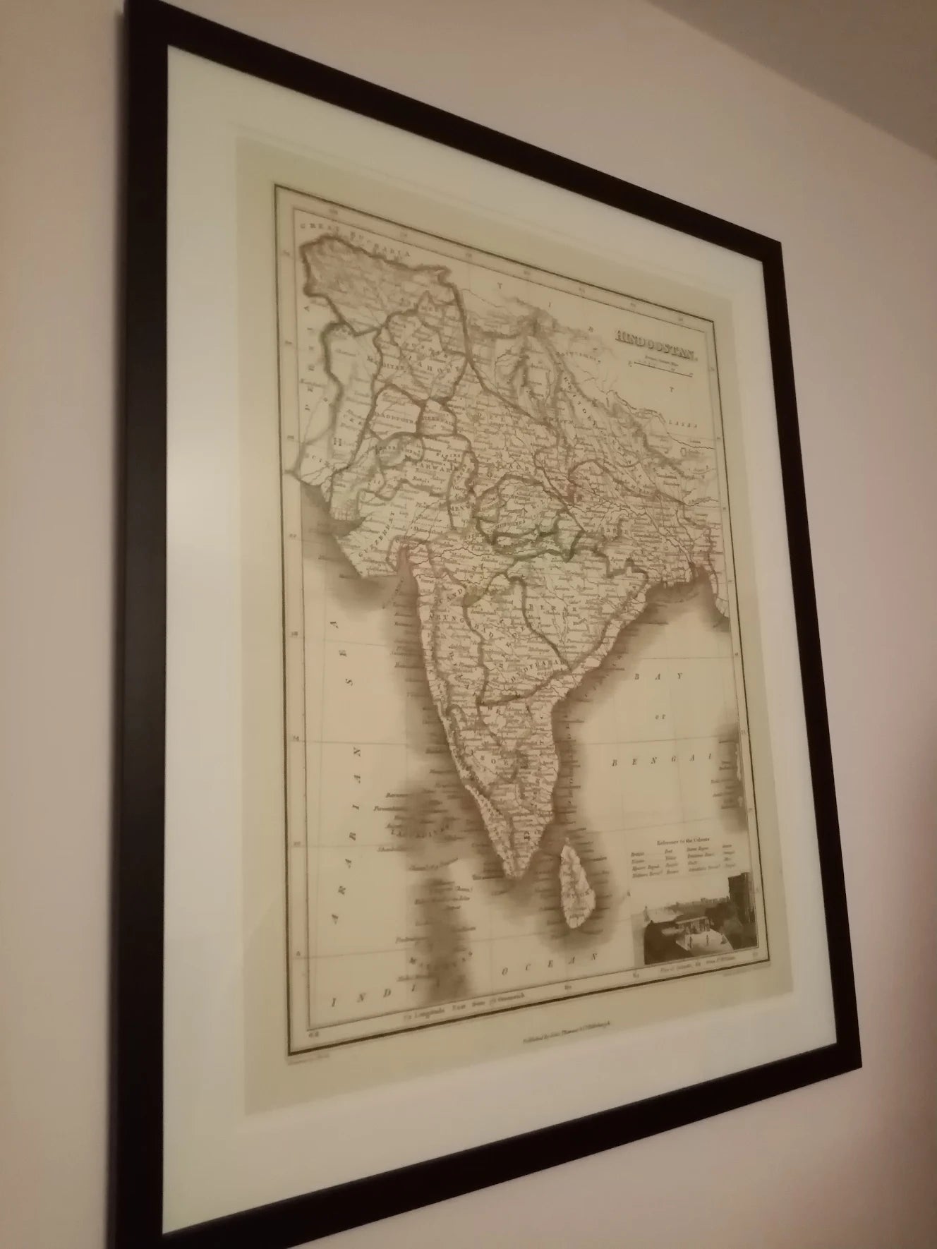 Hand-finished frame with anti-reflective glazing and float mount.
